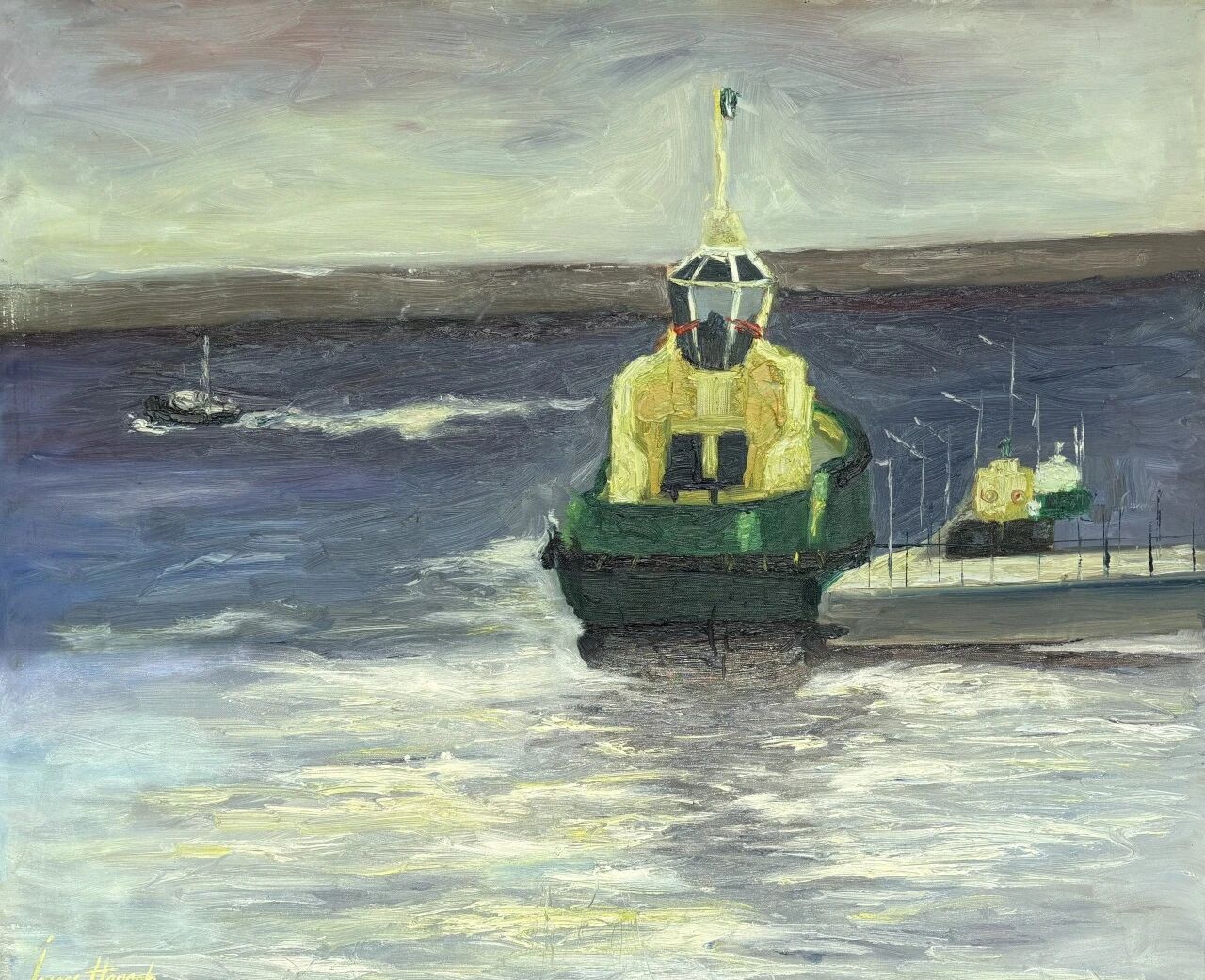 此幅莱基港拖船作品是对“自我”的深刻隐喻。拖船虽体形微小,力量却是强大的,它象征着坚韧、谦逊以及巨大的潜力。它代表着作者这类人——沉静、稳健且目标明确,能够引导那些无法独自航行的巨轮。波光粼粼的水面和港口背景,凸显了力量与含蓄之间的平衡。它时刻提醒我们,在每一段宏大的征程背后,都有着坚定的支持、不懈的毅力,以及对目标的执着。这是一幅关于身份认同、服务精神与奉献精神的自画像。
